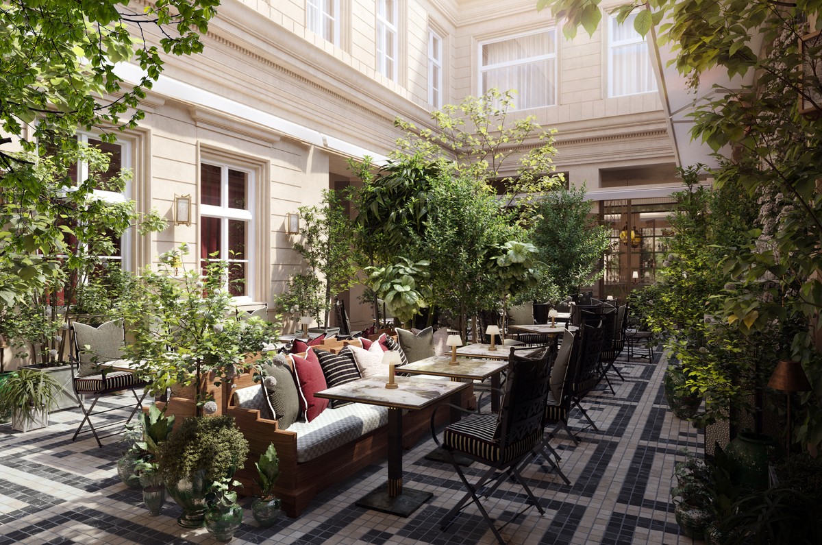 Discover our quiet courtyard, a small, intimate gem wrapped in greenery. Whether you’re enjoying a drink or pausing between city explorations, it’s your private pocket of calm in the heart of Prague.